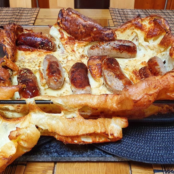 Light crispy batter and juicy sausages drowned in a deeply rich and tangy onion gravy. There’s little else more satisfying when all you want to do is fill your heart with gravy.